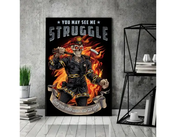 You Will Never See Me Quit Firefighter Poster Wall Decor Firefighter Art Print Firefighter Wall Decor Skull Poster Firefighter