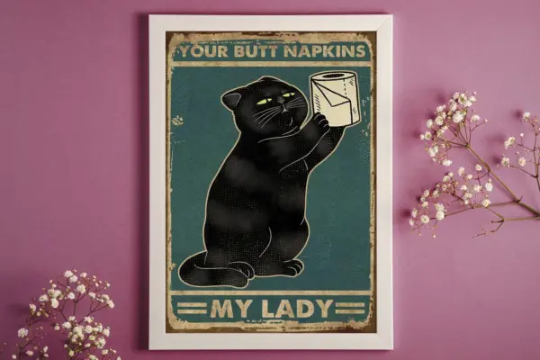 Funny Black Cat Bathroom Poster - Vintage Kitty Wall Art