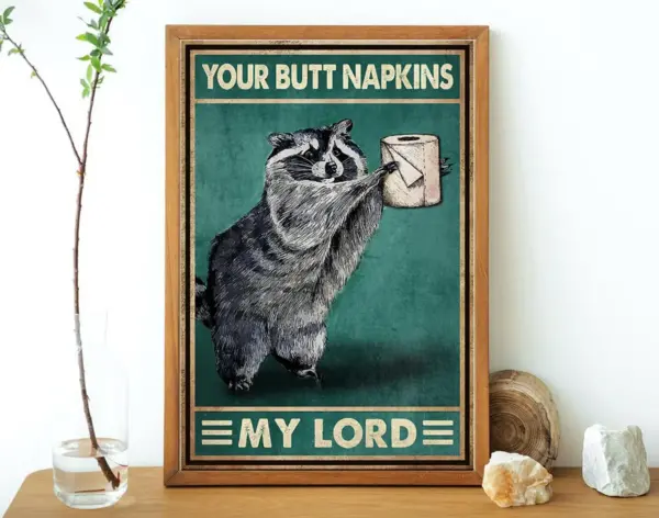 Your Butt Napkins My Lord Vertical Poster Funny Racoon Funny Toilet Poster No Frame