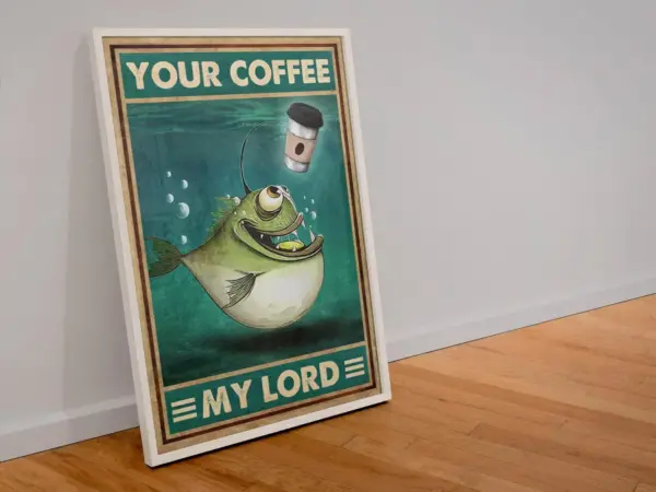 Your Coffee My Lord Funny Angler Fish Poster Caffeine Addict Art Print Fish Lover Canvas Art For Home And Kitchen Decor