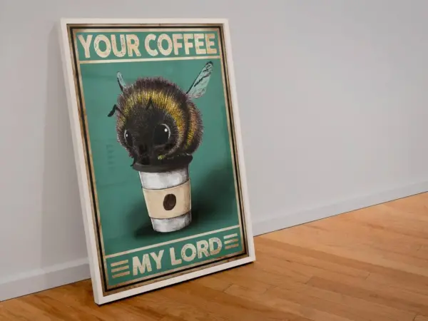 Your Coffee My Lord Funny Bee Poster Caffeine Addict Art Print Hive Lover Canvas Art For Home And Kitchen Decor