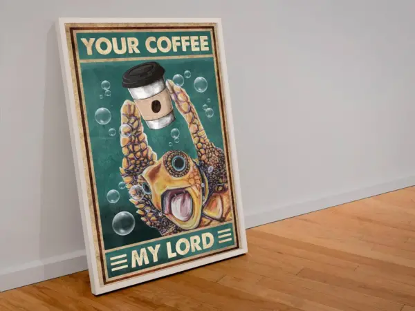 Your Coffee My Lord Funny Turtle Poster Caffeine Addict Art Print Turtle Lover Canvas Art For Home And Kitchen Decor