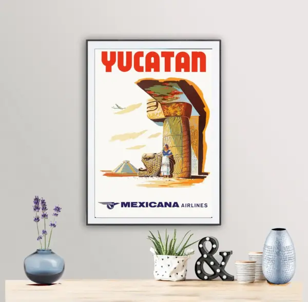 Yucatan Mexicana Airlines Vintage Travel Poster Poster Print Sticker Or Canvas Print Gift Idea Christmas Gift