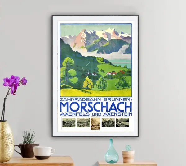 Zahnradbahn Brunnen Morschach Suisse Vintage Travel Poster Poster Paper Sticker Or Canvas Print Gift Idea