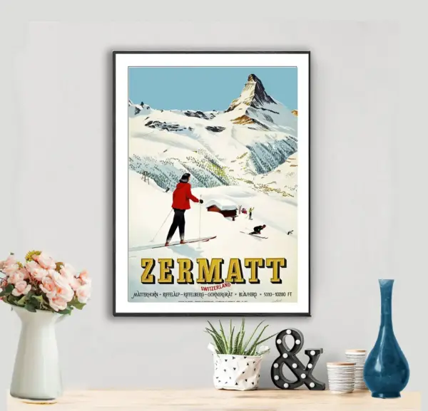 Zermatt Switzerland Schweiz Vintage Travel Poster Poster Paper Sticker Or Canvas Print Gift Idea Wall Art